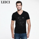 LEICI/雷驰男装 夏装 男士烫钻休闲V领短袖T恤 9002