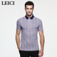 LEICI/雷驰男装 夏装 纯棉男士商务格子短袖修身衬衫 9005