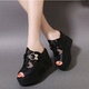 特价夏季新款高跟一字拖松糕厚底坡跟网纱女凉鞋性感鱼嘴沙滩拖鞋