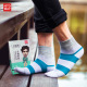 男士袜舒适吸汗休闲袜全棉大条纹中筒男袜子6双礼袋装