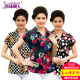 中老年女装夏装 短袖衬衫女T恤 妈妈装插肩袖V型翻领修身弹力开衫