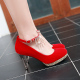 新款红色结婚鞋水钻新娘鞋中式防水台女鞋一字扣流苏细跟高跟单鞋