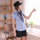 新款夏季学院风短袖衬衫女韩版修身中长款蝴蝶结少女学生纯棉衬衣