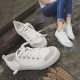 新款白色高帮帆布鞋女夏季男平底平跟学生板鞋黑布鞋韩版情侣球鞋