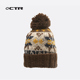 CTR女士户外休闲手工编织针织帽子保暖时尚粗针毛线帽14G32357