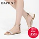 Daphne/达芙妮2017正品百搭一字带露趾女鞋 时尚水钻搭扣低跟凉鞋
