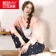 红豆居家女士纯棉睡衣长袖全棉春秋可爱印花开衫可外穿家居服套装