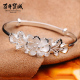 宝诚 感恩之花足银手镯纯银女开口细纯银手环母女同款银饰银镯子