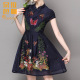 朵拉芭娜2017夏季新款女欧美时尚刺绣连衣裙短袖旗袍领修身A字裙