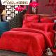 水星家纺大提花婚庆四件套 大红结婚套件 牡丹颂 送靠垫套2只
