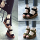 韩版凉鞋女坡跟2017夏季新款松糕厚底学生凉鞋魔术贴罗马高跟女鞋