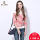 ELAND衣恋春季纯色圆领七分袖条纹T恤EELA62301E专柜正品