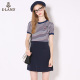 ELAND衣恋秋季假两件条纹短袖连衣裙EEOM63753B专柜正品