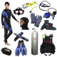 新品深潜豪华装备成人钢气瓶长袖潜水服户外BCD浮力衣13件套装