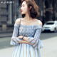 2017夏季新款韩版显瘦露肩一字领连体裤女装吊带短裤黑色连衣裤子