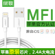 绿联iPhone6数据线苹果5s6s7Plus手机ipad MFI认证充电器短线2米