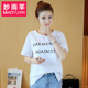 妙雨莘2017新款短袖t恤女宽松大码女装白色半袖体恤女款字母棉t桖