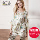 金三塔春夏真丝休闲睡衣桑蚕丝印花薄款七分袖长裤家居服女衣裤套