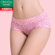 欧林雅竹浆纤维中腰基础款女士三角裤豹纹印花舒适透气女打底内裤
