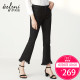 伊芙丽2017新款春夏季黑色毛边喇叭裤九分裤修身春装牛仔裤女裤子