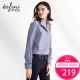 伊芙丽2017春装新款长袖新竖条纹衬衫女韩范欧洲站韩版百搭衬衣女