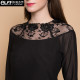 衣路芬芳2017新款蕾丝打底衫女双层春秋修身弹力黑色长袖t恤Q083