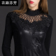 衣路芬芳高领加绒加厚蕾丝衫pu皮衣女长袖上衣2017春秋新款打底衫