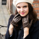 真享秋冬季女士保暖系带式羊皮手套韩版全指加绒内里真皮手套百搭