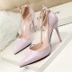 韩版时尚显瘦性感镂空后绊带细跟高跟漆皮浅口尖头单鞋女鞋高跟鞋