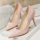 韩版时尚甜美风秀气优雅细跟高跟浅口显瘦尖头彩钻水钻单鞋公主鞋