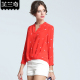 2017夏季新品女装印花V领宽松小清新红色真丝衬衫长袖衬衣女韩版