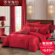 LOVO家纺罗莱生活婚庆四件套丝棉提花套件红绣花床单透气舒适被套