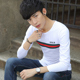 秋季新款男士长袖T恤圆领条纹青少年学生T恤纯棉打底衫潮男装上衣
