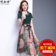 悦淑女假两件连衣裙女夏新款收腰显瘦印花中长款A字裙中年打底裙