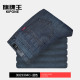 旗牌王牛仔裤男大码秋季新品猫须中腰微弹蓝色直筒休闲长裤子男装