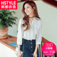 韩都衣舍2017韩版女装夏装新款竖条纹衬衣七分袖V领衬衫JM6342蒖