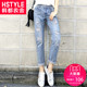 韩都衣舍韩版2017夏新款女宽松显瘦小脚裤破洞长裤牛仔裤HO5224魭