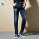 LD/唠叨新款激光镭射印花牛仔裤男弹力烫印图案小脚牛仔裤