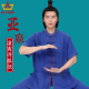 山人运动夏季短袖太极服男中国风中袖太极拳练功服装亚棉麻武术服