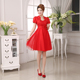 伴娘礼服2017新款春季红色结婚晚礼服短款一字肩大码新娘敬酒服女
