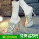夏季新款鱼嘴透气凉拖女士方跟水钻套脚女鞋镂空防水台网纱单鞋女