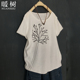 暖树2016夏季新高端亚麻精美手工钩花镂空宽松针织衫女套头短袖