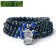 晶鸣水晶 紫水晶6mm绕多圈手链 黑曜石狐狸925银紫晶手串女