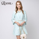 Roem洛妍2017夏季新品女装领口系带荷叶边袖印花连衣裙RCOW72418T