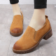2017春季新款真皮女鞋厚底粗跟中跟一脚蹬休闲鞋女士