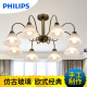 飞利浦吊灯 现代简约卧室客厅餐厅灯具饰 铜铃五头吊灯八头吸顶灯