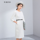 利贝拉春秋新款圆领纯色中裙子细竖条纹气质显瘦七分袖连衣裙女