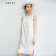 利贝拉2017夏季新款纯色圆领百搭中长裙假口袋个性通勤无袖连衣裙