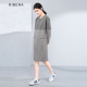 利贝拉春秋新款撞色竖条纹中长款裙子女休闲宽松长袖圆领连衣裙