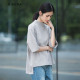 利贝拉2017春季双层高领针织上衣休闲简约纯色宽松五分袖女式T恤